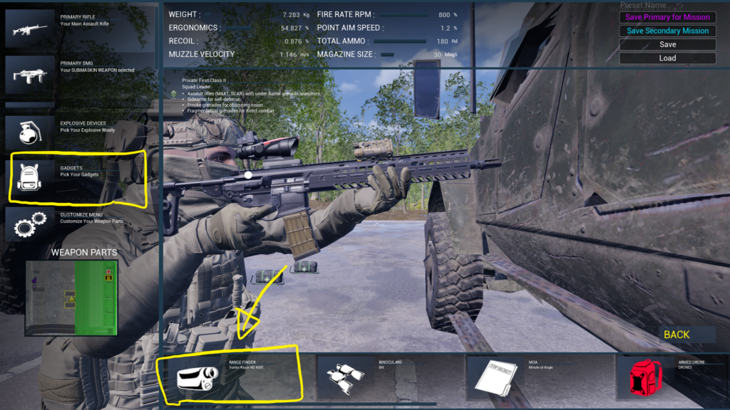 レンジファインダーは距離の測定ができるスコープです。装備できるクラスは限られています。